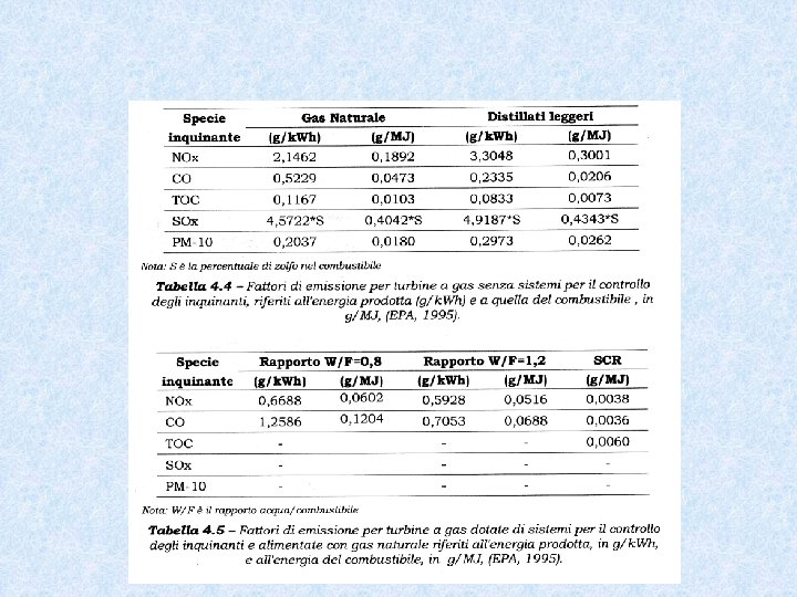 • Sono valutati a partire da un numero elevato di misure effettuate su campioni rappresentativi della tipologia considerata • Possono essere ricavati anche da valutazioni teoriche (bilanci di materia e di energia) • Possono tenere in conto la tecnologia considerata, l’età dell’impianto, il tipo di manutenzione • Si prestano meglio a descrivere le sorgenti puntuali e sono più adatti per le valutazioni su vasta scala in ampi periodi temporali
