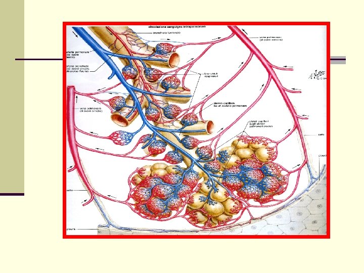 COMPLIANCE • EDEMA (sottomucosa ed avventizia) • ISPESSIMENTO INTERSTIZIALE ALVEOLARE (da 2 a 20 microns) “L’INDURIMENTO BRUNO DEL POLMONE”