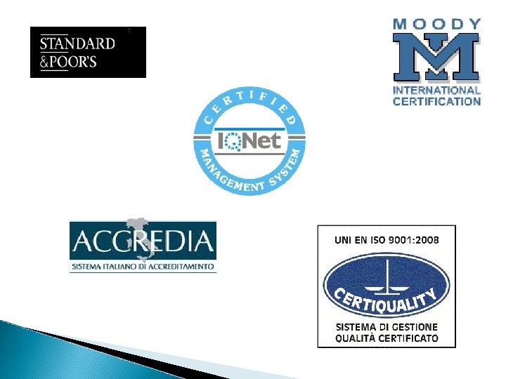 Le nostre strutture universitarie certificate UNI EN ISO 9001: 2008 Strutture Amministrative Nucleo di Progettazione Universitaria Ufficio Fiscale Ufficio Progettazione della Ripartizione Tecnica Facoltà di Agraria Facoltà di Medicina Veterinaria Centri CERB - Centro di Eccellenza per la Ricerca sulla Birra Laboratorio di celle a combustibile (Dipartimento Ingegneria Industriale) Laboratorio di macchine (Dipartimento Ingegneria Industriale) Laboratorio di fisica tecnica (Dipartimento Ingegneria Industriale) SERMS - Laboratorio Studio degli Effetti delle Radiazioni sui Materiali per lo Spazio (Polo di Terni) Laboratorio di Scienze e Tecnologie dei Materiali (Polo di Terni) CEM Laboratorio per la Caratterizzazione Elettromagnetica (Polo di Terni) Laboratorio Informatico e Multimediale (Polo di Terni)