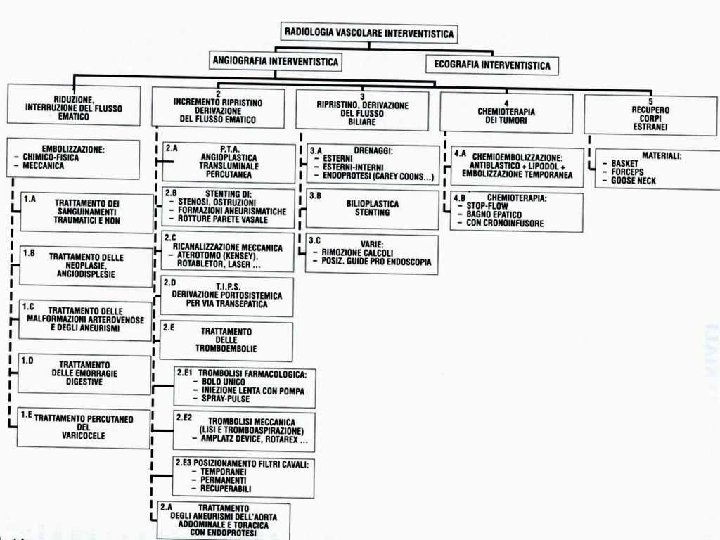 -Radiologia Interventistica -Attrezzature in Radiologia Vascolare(Cenni) Attrezzature Tradizionali in Radiologia Vascolare Attrezzature Radiologiche digitali in Radiologia Vascolare -Tecniche e materiali (Cenni) Tecniche di Rivascolarizzazione delle stenostruzioni artero-venose Trombosi Venosa Profonda, Tromboembolia polmonare, Filtri cavali -Assistenza Infermieristica in Radiologia Vascolare -Interventistica Biliare (Cenni) -Chemioterapia dei Tumori (Cenni) -Recupero Corpi Estranei (Cenni) -Attrezzature e Tecniche di Interventistica non vascolare ECO/TAC guidata(Cenni) Biopsia per cutanea Drenaggio per cutaneo -Assistenza Infermieristica in Interventistica non Vascolare
