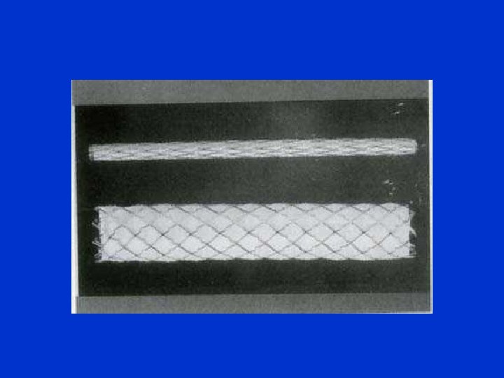 LO STENTING Gli Stents sono delle strutture a maglie tubulari in acciaio o in leghe metalliche hanno dimensioni diverse. Devono essere non collassabili e non causare depositi e quindi restringimenti. Essi sono impiegati per il mantenimento della pervietà vasale o per la ricostruzione della continuità vasale in caso di rottura in presenza di aneurismi.