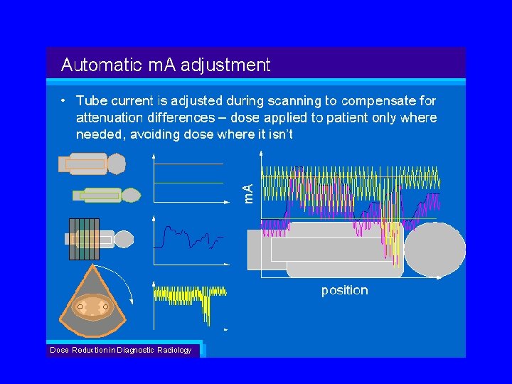 Riduzione della dose al paziente (4) Le innovazioni tecnologiche contribuiscono alla riduzione della dose al paziente hanno come contestuale obiettivo il miglioramento o, almeno, il mantenimento della qualità intrinseca delle immagini. Numerosi studi, J. E. Wildberger et al. [Invest. Radiol. 36, 2001] per gli esami toracici, E. Coppenrath et al. [Forts. Roentgenstr. 27, 2003] e D. Sahani et al. [J. of Comp. Ass. Tom. 173, 2001] per gli esami addominali, hanno rilevato come riducendo e modulando i parametri di scansione sulle caratteristiche di ciascun paziente si realizza una accettabile qualità diagnostica delle immagini con rilevante riduzione delle dosi.