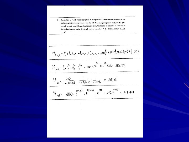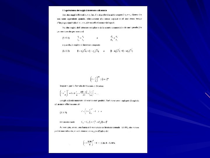 Interesse k r r’ r’’ annuale 1 0, 06000 semestrale 2 0, 06090 0, 05913 trimestrale 4 0, 06136 0, 05870 mensile 12 0, 06168 0, 05841 giornaliero 365 0, 06183 0, 05827 istantaneo + ¥ 0, 06183 d=0, 05826