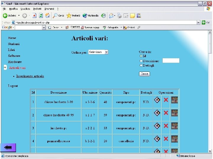 INDICE 3. UTILITIES n n n 4. Sicurezza L’aula Gasl Articoli da riordinare Ordinamento Ricerca BIBLIOGRAFIA
