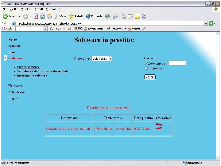 INDICE 1. 2. INTRODUZIONE: IL GASL IL PROGETTO “MAGAZZINO” n n Database Categorie n n n Gestione n n Studenti Libri Software Hardware Articoli vari Inserimento Modifica Cancellazione Servizi agli studenti n n Prestito software Prestito libri
