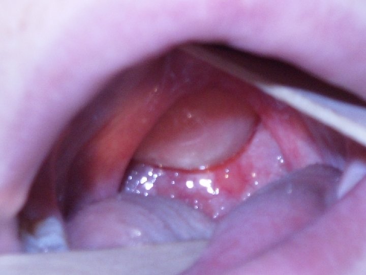 Examenul obiectiv • Aderenţele (cicatricele) dintre stâlpii amigdalieni şi amigdale, fapt ce este legat de procesul imflamator acut şi cronic ce are loc în amigdale (angina, amigdalita cronică). • Hiperemia marginelor libere ale stâlpilor amigdalieni, mai ales a celor anteriori - simptomul Gize. • Edemul stâlpilor anteriori, cu o predilecţie în partea lor superioară -simptomul Zac. • Hiperemia, infiltraţia şi edemul stâlpilor amigdalelor palatine - simptomul B. S. Preobrajenski. Patogenia acestor simptoame este în legătură cu tulburările de eliminare din cripte, cu stază în vasele sanguine şi limfatice.