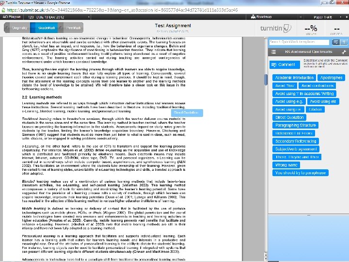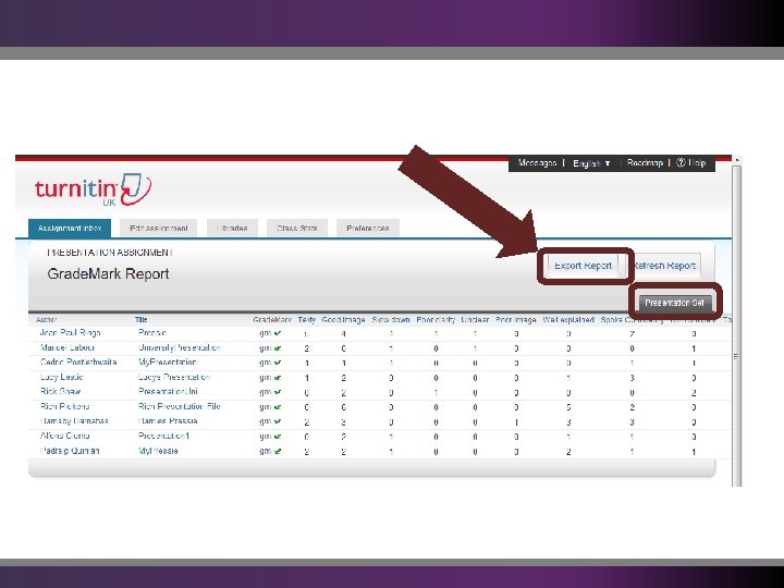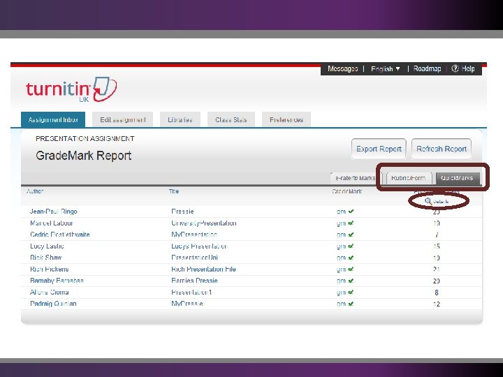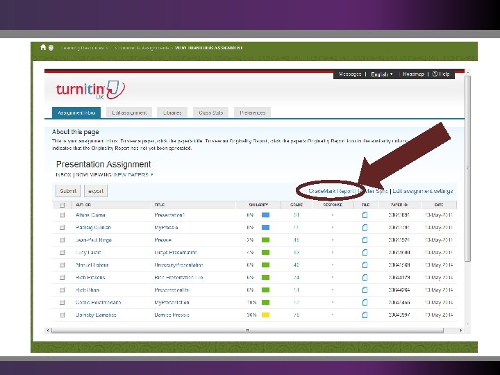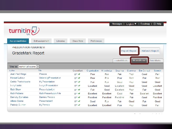 Types of Report from Grade. Mark Originality Turnitin Grade. Mark Quick. Mark Sets Rubrics Peer. Mark