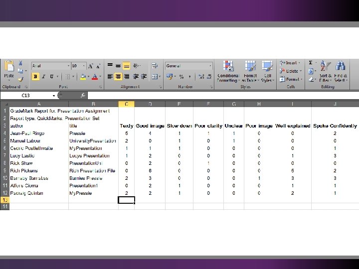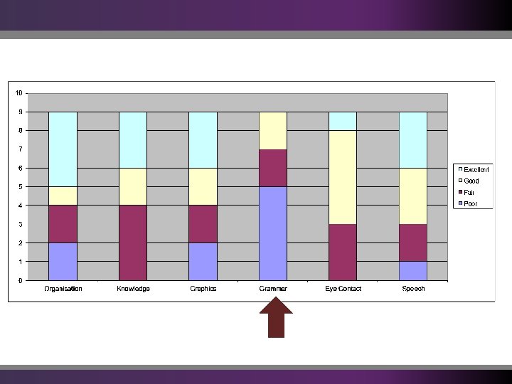 Poor answer Poor eye contact Slow down Too quiet No of Students Unclear Total No of Comments Not confident Poor content Poor image Texty 0 2 4 6 8 10 12 14