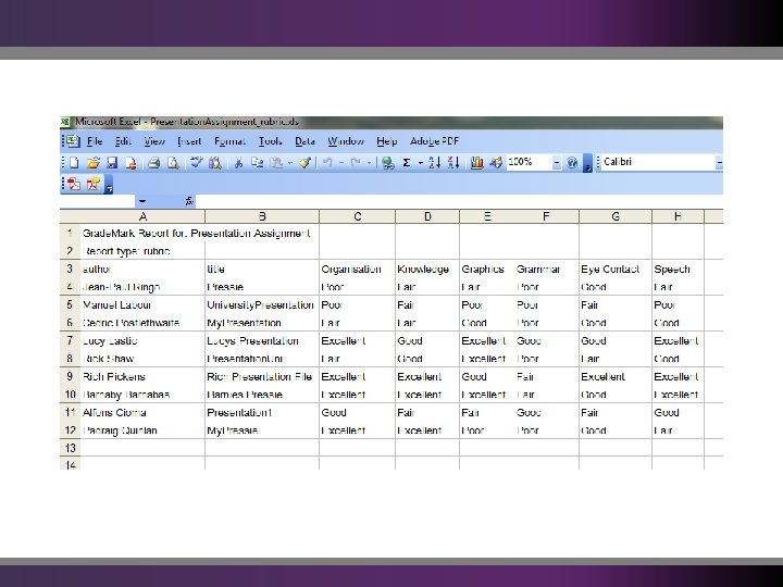 Introduction to the reports you can get out of Grade. Mark How to run the reports Ways of using the Data Example of use: Targeted screencasts Questions/ Discussion