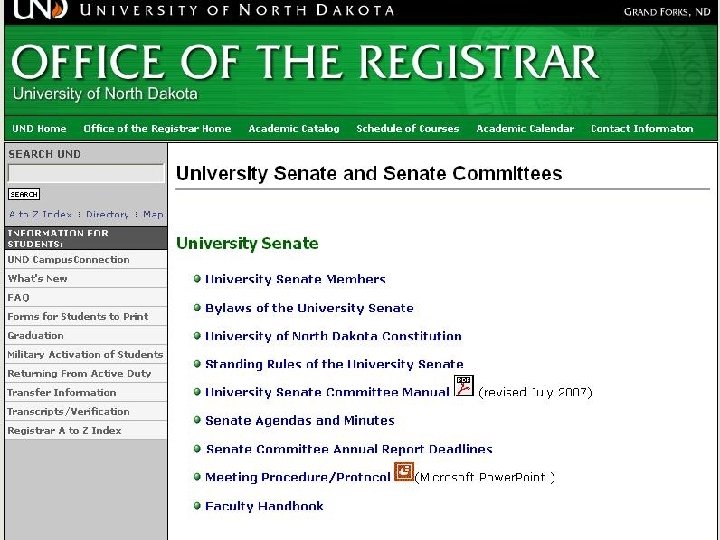 University Senate Orientation 2011 -2012 http: //www. und. edu/dept/registrar/senate/index. html