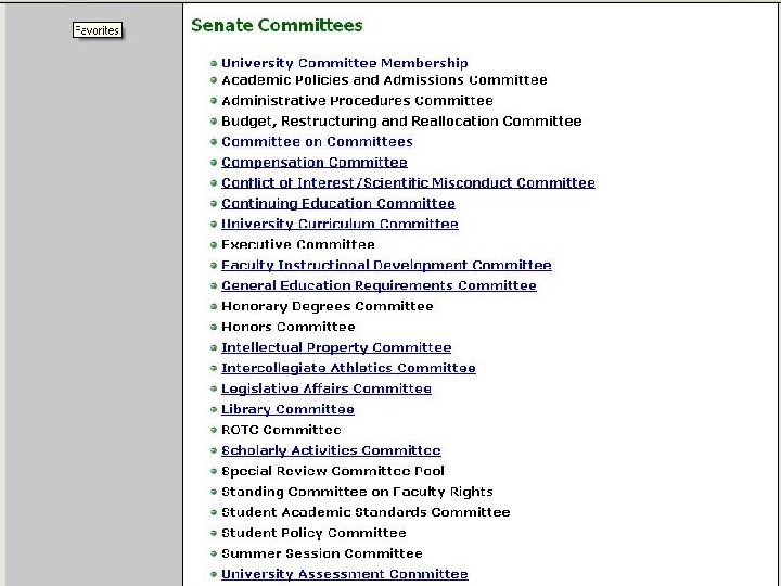 Committee Responsibilities to the Senate · Report to the Senate Each committee will provide a short, written and/or oral report of its activities once each year or as required. Method and date is part of the committee description and included on the list of committees.