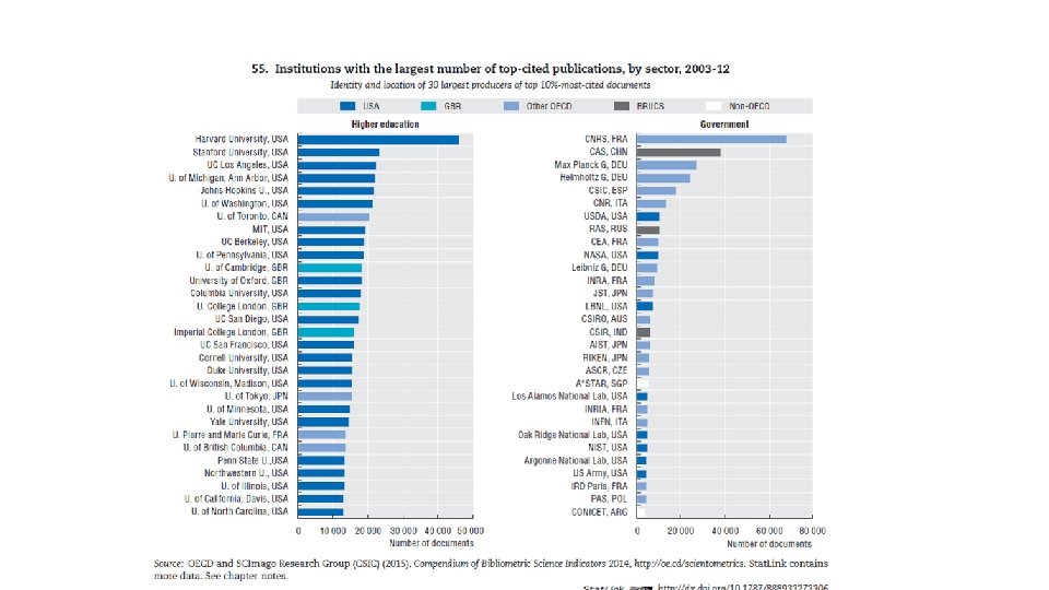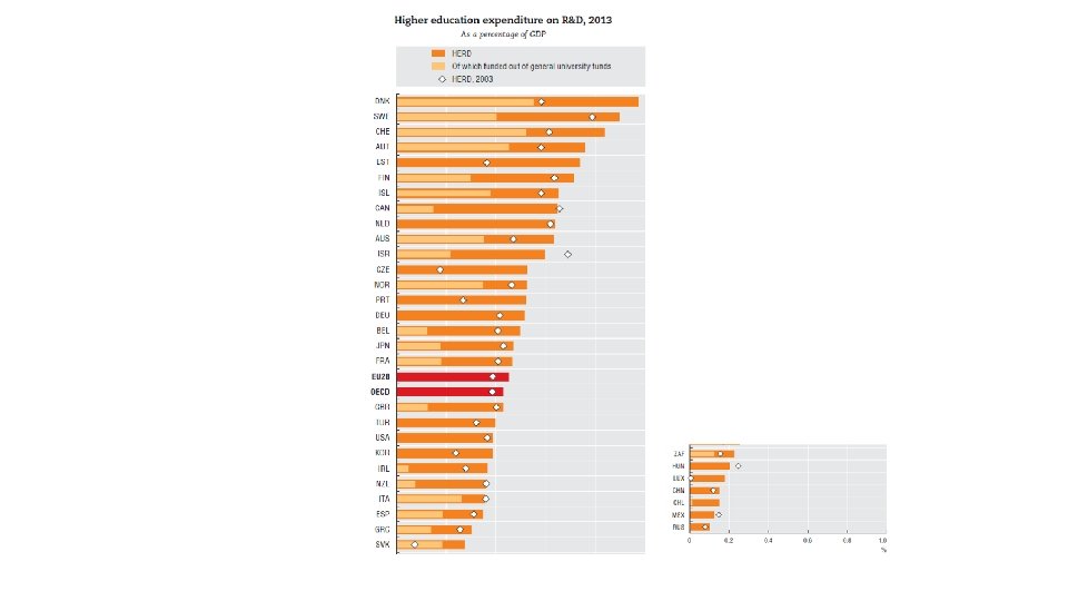 • the role of universities as R&D performers (measured in terms of the share of national R&D performed within higher education) is greatest in Italy, the Netherlands, and Canada,
