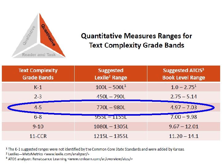 Step 1: Quantitative Measures Resources for Accessing Quantitative Measures of Text Which may include: • Lexile • ATOS book level • Additional measures • Readability formulas