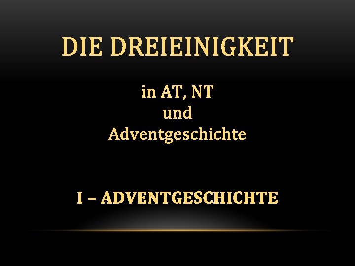 Unser Glaube - Beständigkeit und Wandel - 1844 -1888: Nicht-trinitarische Zeit Gründe für die Ablehnung: (1) Kannten keine biblischen Beweise für drei Personen in einer Gottheit (2) Falsche Auffassung, dass Vater und Sohn identisch wären (3) Falsche Auffassung, dass man damit drei Götter anbetet (Loughborough 1861: „Wenn der Vater, der Sohn und der Heilige Geist jeweils Gott sind, dann wären es drei Götter. “) (4) Es mindere den Wert der Erlösung; wie kann der unsterbliche Gott sterben? (Ellen White dazu: „Die Gottheit starb nicht, das Menschliche starb. “ (Ms 131 (1897))) (5) Jesus bezeichnet als „Sohn Gottes“ und „Anfang der Schöpfung“ (6) Ausdrücke für den Heiligen Geist, die nicht gut zu einer Person passen (z. B. „ausgießen“)