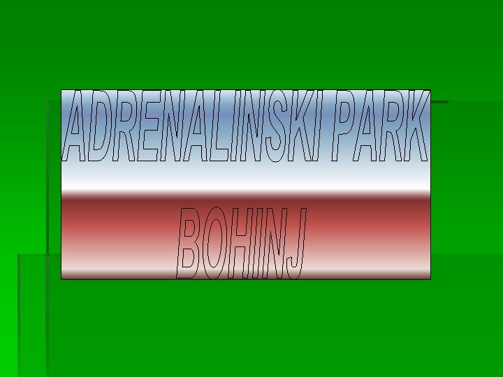 § Imate radi šport, adrenalin in malo akcije! Ponujamo vam izlet v adrenalinski park v Bohinju. Izvajanje različnih nalog in premagovanje ovir 8 m nad tlemi predstavlja popolnoma nov način zabave. Poleg zabave, pa ima adrenalinski park tudi izredno pozitiven učinek na koordinacijo – predvsem na občutek za ravnotežje. Po opravljenih nalogah se vam bo prav gotovo močno dvignila samozavest, saj boste med izvajanjem nalog premagali notranji strah pred višino.