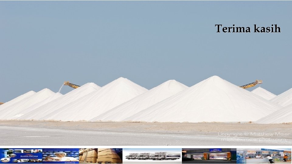 DETAIL PRODUK • Persyaratan Garam Derajat Farmasetis Parameter Kadar Na. Cl, (db), min Garam Konsumsi Rumah Tangga Garam Aneka pangan (Saline De Bex) Garam Derajat Farmasetis 97% 99, 8% 99, 5% 80 ppm ~ 0 20 ppm ~ 0 0, 2 % ~ 0 -- Kadar Ca, maks Kadar Mg, maks 2% Kadar SO 4, maks Pengotor lainnya, 1% 0, 01% Kadar air, maks 7% 0, 2 % 5 ppm -- 30 -40 ppm -- -- Kadar anti caking, maks ( K 4[Fe(CN)6] ) Kadar iodium (Sumber : Farmakope Indonesia Ed. IV)