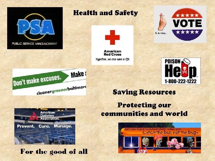 • • • • Adopt-A-Pet Smokey the Bear Alcohol/Smoking Anger Management Seat Belt Animal Abuse Stay in School Stealing Stranger Alert Cell phones Suicide Prevention Child Abuse Teasing