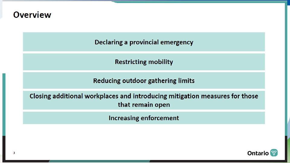 WHAT’S CHANGED SINCE OUR LAST MEETING? December 16 January 27 • Ontario § Cases: 146, 535 (2, 139 in past day) § Cases: 260, 370 (1, 670 in past day) § Deaths: 4, 035 (43 in past day) § Deaths: 5, 958 (49 in past day)