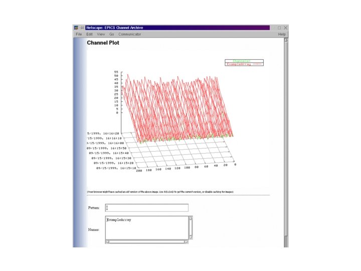 Performance Numbers - Archiving • These tests were performed on a 450 MHz Pentium. • 500 channels changing at 10 Hz and written every 15 seconds uses 20% of the CPU time during collection and 100% of the CPU time for 5 seconds while writing to disk. • 1, 000 channels changing at 10 Hz and written every 15 seconds uses 100% of the CPU continually, but allows the status viewer to run, but more slowly.