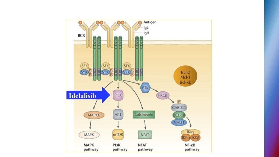 IDELALISIB § Phosphoinositide - 3 kinase delta (PI 3 K�) inhibitor § PI 3 K signaling in CLL ( through delta isoform) -important role in BCR signaling