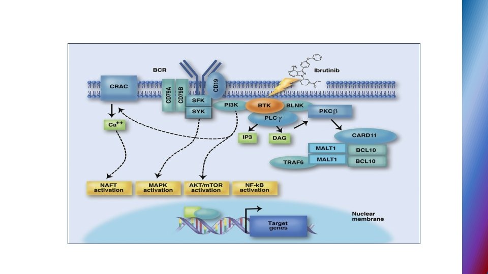 IBRUTINIB § First-in-class irreversibly inhibitor of BTK (Bruton tyrosine kinase) , small molecule , binds to cysteine • BTK activity is critical for B-cell survival and function
