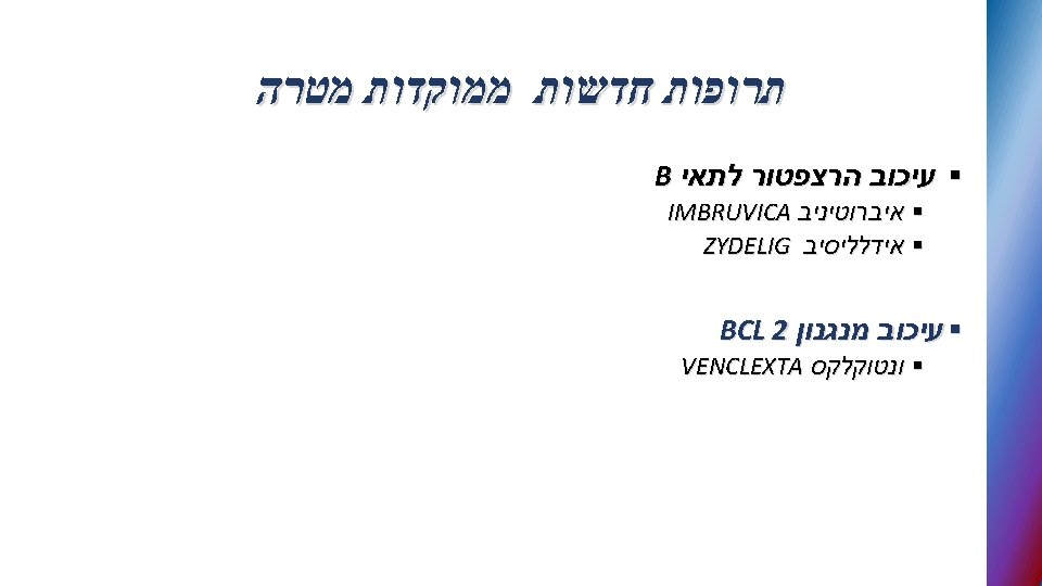 Novel targeted therapies in CLL § B-cell receptor signal transduction inhibitors § BCL 2 antagonists