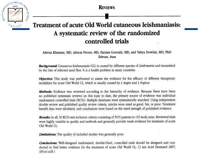 Overview of 50 qualified RCTs for inclusion in a systematic review published in 2007 Source: Khatami et al. J Am Acad Dermatol 2007