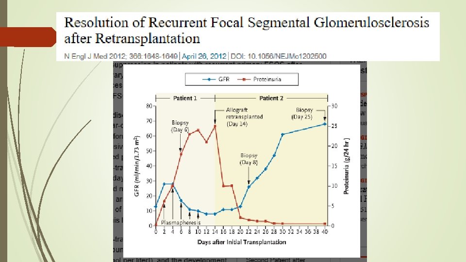 FSGS – Treatment Nephrotic Syndrome If due to medications/viruses treat underlying cause, stop offending medication ACEI/ ARB Corticosteriods Polymorphisms in the glucocorticoid receptor encoded by NR 3 C 1 have been associated with both relapse and frequent relapse Cyclosporin plus low-dose prednisone. Mycophenolate combination with glucocorticoids in three trials against active comparators that were either glucocorticoids or cyclosporin None of the trials showed significant differences between groups, and although sample sizes were small, particularly for noninferiority trials, these data suggest efficacy. Kidney Int 85: 1444 -1453, 2014 Kidney Int 56: 2220 -2226 NDT 23: 1926 -1930, 2008