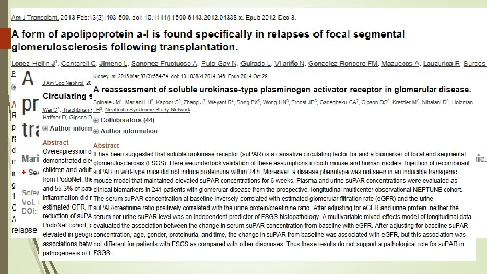 Classification of FSGS Primary Secondary Genetic APOL 1 related Renal limited 1. Maladaptive Increased Circulating Podocyte toxic Factor Syndromic 2. Infectious 3. Medications Am J Kidney Dis 43: 368 -382, 2004 CJASN Vol 12 no 3 502 -517