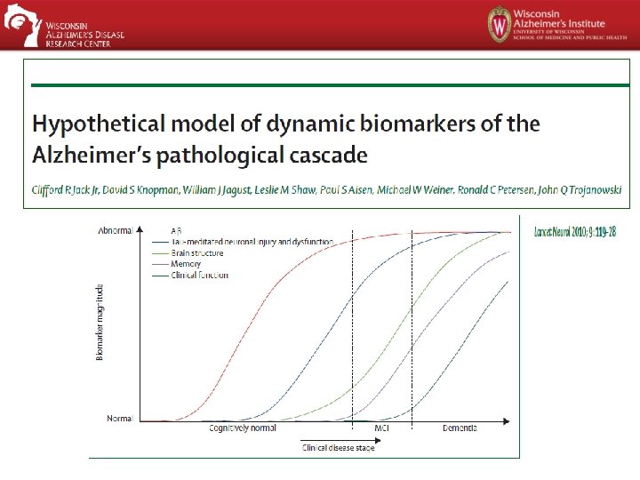 Updates III: Biomarkers • “Variables that can be measured in vivo and that indicate specific features of diseaserelated pathological changes” – Jack et al. 2010 Neuritic plaques Tangles Neuronal dysfunction/loss Cerebrospinal fluid A 42 Phospho-tau Total tau Brain imaging Amyloid PET (eg Pi. B) Tau PET (eg T 807) Glucose PET, f. MRI, T 1 -MRI