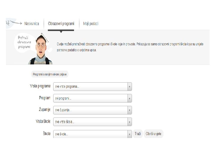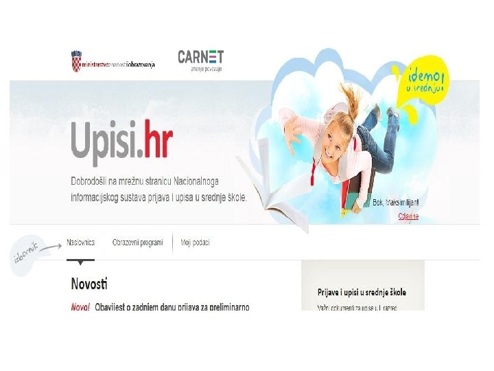 Nacionalni informacijski sustav prijava i upisa u srednje škole • www. upisi. hr • svaki učenik dobiva svoj elektronički identitetkorisničko ime, lozinka, PIN • prijava od 25. svibnja • provjera ocjena i osobnih podataka • 26. lipnja- počinje prijava obrazovnih programa