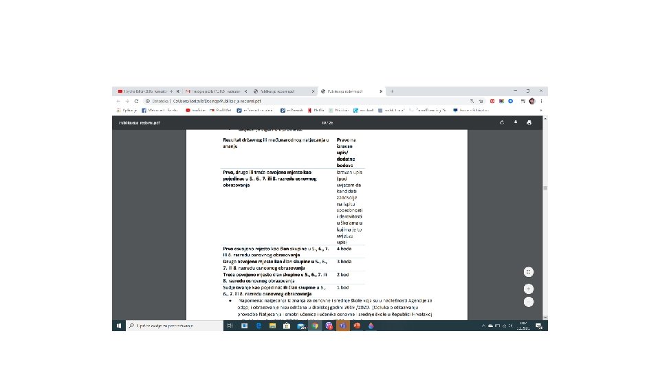 Poseban element 1 BOD • Poseban element vrednovanja čini uspjeh kandidata koji su ostvarili u otežanim uvjetima obrazovanja. Kandidatima će se priznati ostvarivanje isključivo jednoga (najpovoljnijega) od sljedećih prava: • • kandidat sa zdravstvenim teškoćama • • kandidat koji živi uz jednoga ili oba roditelja s dugotrajnom teškom bolesti • • kandidat koji živi uz dugotrajno nezaposlena oba roditelja • • kandidat koji živi uz samohranoga roditelja korisnika socijalne skrbi • • kandidat kojem je jedan roditelj preminuo • • kandidat koji je bez roditelja ili odgovarajuće roditeljske skrbi • • kandidat koji je pripadnik romske nacionalne manjine. • U SLUČAJU DA PRIPADATE JEDNOJ OD NAVEDENIH SKUPINA OBRATITE SE RAZREDNIKU/CI ZA INFORMACIJU O POTREBNOJ DOKUMENTACIJI