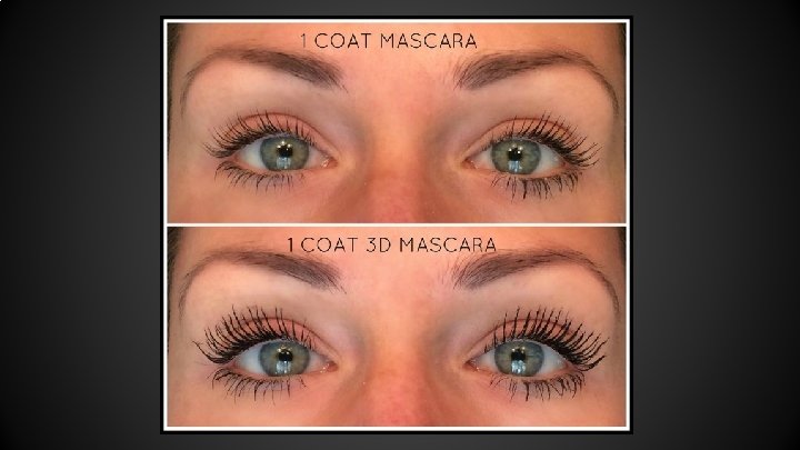 3 D Fiber Lashes Our most famous product is the 3 D Fiber Lashes (a duo that contains green tea fibers!) making it easy for you to achieve gorgeous looking eyes in just a few minutes, that last ALL DAY, go on like mascara & wash off. The 3 D set promises a 300% increase in lash volume. And they deliver on that promise!! Just look at this photo! And between us girls…the luminous eye pigments actually “lift” the eye.