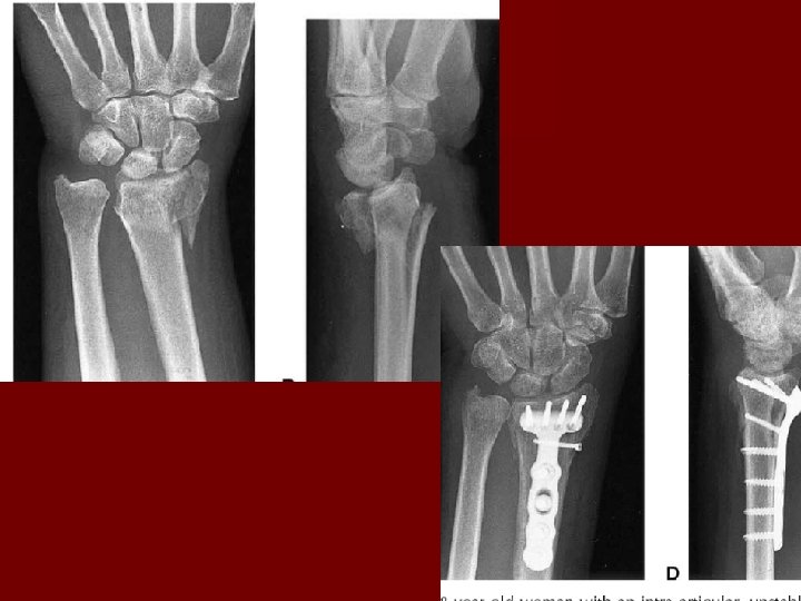 Distal Radius Fractures n Epidemiology – Most common fractures of the upper extremity – Common in younger and older patients. Usually a result of direct trauma such as fall on out stretched hand – Increasing incidence due to aging population n Mechanism of Injury – Most commonly a fall on an outstretched extremity with the wrist in dorsiflexion – High energy injuries may result in significantly displaced, highly unstable fractures