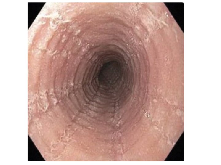 Eosinophilic Esophagitis (Eo. E) • Increasing incidence; 15 % of EGD for dysphagia; M >> F; increased eotaxin 3 response to IL-13 (Th 2) • Requires symptoms, > 15 eos/hpf; absence of other conditions • Atopy in 50%; peripheral eos in 30% • PPI responsive > 30% • Topical swallowed steroids - complete histo response 60 -70% • Elemental diet 90% effective; SFED 70% (especially milk/wheat in adults) • Cautious dilation successful in > 85%, with low perforation rate • ? endpoints in adults