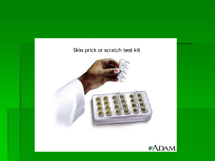 § Paraclinic § CBC § Eosinophilia § Increased serum Ig. E § Nasal smear § Eosinophilia § Skin prick test (gold standard) § Nasal peak flow measurement (acrossshift)