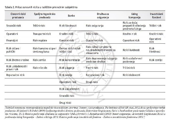 UPRAVLJANJE RIZIKOM U FINANSIJSKOM POSLOVANJU Brojne ekonomske krize u svetu su rezultirale katastrofalnim gubicima za učesnike na finansijskom tržištu što je uslovilo da se na institucionalizovan način rešava problem upravljanja rizicima. Postoje različite definicije rizika, a zajednički elementi svih definicija su: neodređenost ishoda i gubitak kao jedan od mogućih ishoda. Rizik je stanje u kojem postoji mogućnost negativnog odstupanja od poželjnog ishoda koji očekujemo ili kome se nadamo. Najčešća klasifikacija rizika je na: 1) Finansijski i nefinansijski rizik 2) Dinamički i statički rizik 3) Fundamentalni i posebni rizik 4) Čisti i špekulativni rizik.