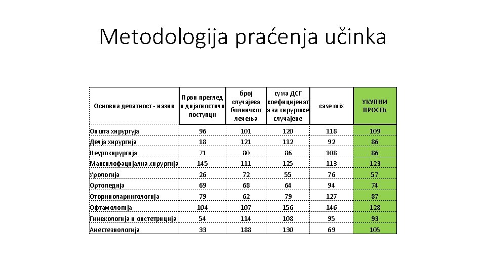 PROSEČAN TROŠAK PO PACIJENTU UKUPAN TROŠAK PO ODELJENJU DIREKTNI TROŠKOVI INDIREKTNI TROŠKOVI BROJ USLUGA • PLATE I OSTALI TROŠKOVI RADA • LEKOVI • MATERIJALI • ENERGENTI • ISHRANA • ZAJEDNIČKE SLUŽBE