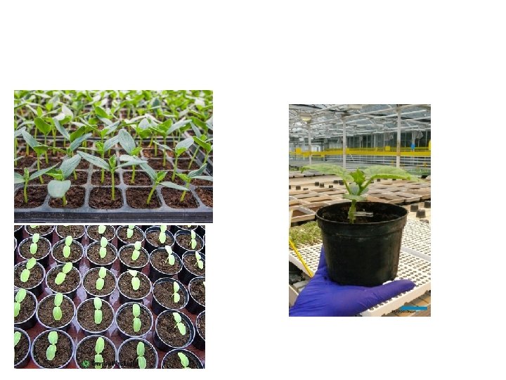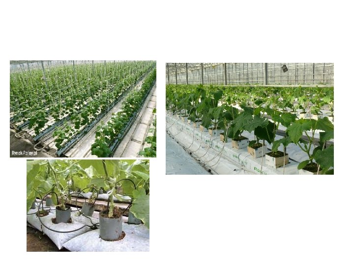 Produkcja rozsady • Na zbiór najwcześniejszy (w końcu lutego) wysiewa się nasiona w końcu listopada lub na początku grudnia. Produkcja rozsady trwa wówczas 45 -50 dni. Im późniejszy wysiew, tym krócej trwa produkcja rozsady, jednak najkrócej około 36 dni. Nasiona, zaprawione wysiewa się najczęściej do doniczek o średnicy 10 cm, wypełnionych do połowy podłożem. Gdy ukażą się liścienie i rośliny wystają z doniczki, podsypujemy podłożem, by lepiej się zakorzeniły. Do chwili wzejścia roślin utrzymuje się temperaturę 26— 23°C, później 22 -24°C w dni słoneczne, 18 -20°C w dni pochmurne i około 18°C nocą. Korzystnie jest doświetlać rozsadę, skracając okres ciemności do 10 -11 godzin. Rozsada z 3 -5 dobrze wykształconymi liśćmi jest gotowa do sadzenia na miejsce stale. • Dobrze jest wysiewać do pierścieni lub doniczek bez dna, w których rośliny ustawiamy na przygotowanych wałach lub matach w szklarni – ogórki nie lubią przesadzania, które uszkadza system korzeniowy.