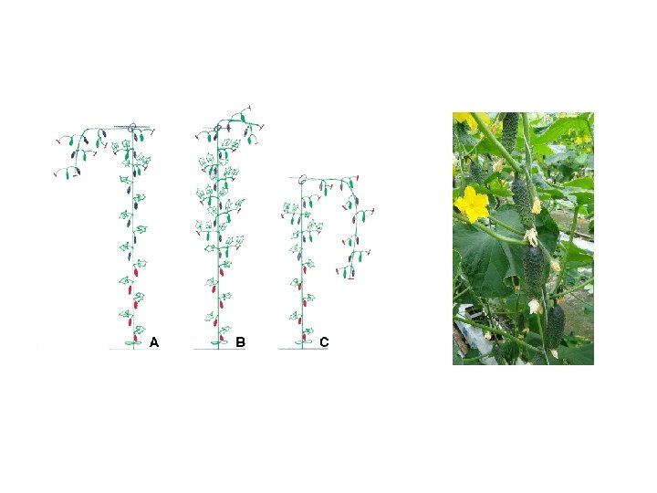 Uprawa ogórka - pielęgnacja Usuwanie zawiązków – W zależności od sposobu uprawy i odmiany, powinno się usuwać nawet 6– 12 pierwszych zawiązków. Przyjmuje się, że na 1 liść powinien przypadać 1 owoc, dlatego zaleca się także usuwanie zawiązków pomiędzy niedorośniętymi owocami. Zwiększenie zagęszczenia oraz liczby zawiązków może obniżyć plon. Prowadzenie roślin W uprawie ogórka pod osłonami najbardziej popularne są trzy metody prowadzenia roślin: z opuszczaniem, metodą tzw. wysokiego drutu oraz „na parasol”. Pierwszy sposób jest rekomendowany zwłaszcza w uprawach z bardzo wczesnych terminów sadzenia. Polega na prowadzeniu roślin na jeden pęd (z usunięciem wszystkich pędów bocznych) i opuszczaniu roślin w miarę ich wzrostu i zbiorów owoców. W metodzie tej zaleca się usunięcie pierwszych 9 zawiązków, a przy pochmurnej pogodzie nawet 12. Zastosowanie tego systemu prowadzenia roślin wpływa na stabilne plonowanie i uzyskiwanie owoców wysokiej jakości. Metoda wysokiego drutu jest podobna do tej z opuszczeniem roślin, jednak rośliny prowadzi się wzdłuż drutu, a dopiero potem opuszcza. Z kolei w metodzie „na parasol” rośliny prowadzi się na jeden pęd do wysokości drutu, a następnie wyprowadza się 2– 3 pędy boczne, które są opuszczane do 1/3 wysokości roślin. Wadą tej ostatniej metody jest ograniczanie dostępu światła do roślin przez dodatkowe pędy.