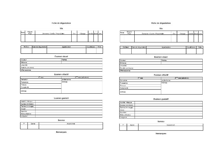 LES SENSATIONS VISUELLES • • • • • Couleur La couleur se révèle près d’une source lumineuse sur fond blanc. Elle se définit par : sa nuance : utiliser un nuancier de couleurs (jaune pale, jaune doré, etc. ), son intensité : pâle, moyenne, soutenue, foncée, profonde, intense, etc. Interprétation : exemple d'un vin blanc jaune pâle : raisin blanc (pas de cépages blanc de noir ni teinturier), jeune ? excès de SO 2 ? rendement hl/ha trop élevé ? vin filtré ? pas d’élevage en barrique ? effet terroir ? Éclat L’éclat (ou brillance) est révélateur d’une certaine « vivacité » du vin due à l’acidité présente dans le vin. Vocabulaire utilisé pour décrire l’éclat d’un vin : cristallin, brillant, éclatant, mat, terne, éteint, etc. Interprétation : un éclat très brillant (surtout dans un vin blanc) est souvent le signe d’une acidité soutenue. Limpidité (ou transparence) C'est l'absence de trouble, observée en retournant vivement une bouteille devant une lampe afin d’observer la chute éventuelle d’un sédiment. Vocabulaire de la limpidité : brillant, cristallin, limpide, clair, mat, etc. Vocabulaire de la turbidité : bourbeux, cassé, chargé, troublé, voilé, etc. Interprétation : vin filtré ? coup de froid (dépôt de cristaux blancs de tartre) ? année chaude et ensoleillée (pot de substances colorantes sous forme de pâte lourde) ? Fluidité (ou viscosité) C'est l'aspect fluide et mobile que le vin présente lorsque l’on fait tourner le verre. Observer les deux points suivants : le disque : incliner le verre et observer la surface du vin en bordure du verre. Déterminer l’épaisseur du disque ; le bourrelet formé sur la paroi du verre après agitation. Les gouttes qui se détachent de ce bourrelet pour descendre plus ou moins rapidement rejoindre le liquide sont appelées les « larmes » ou « jambes » . Interprétation : disque et jambe reflètent la teneur en glycérol (gras), alcool (éthanol) et sucres. Plus les larmes sont abondantes plus la teneur en glycérol / éthanol est importante. Plus les larmes sont lentes à s’écouler, plus la teneur en sucre résiduel est importante.