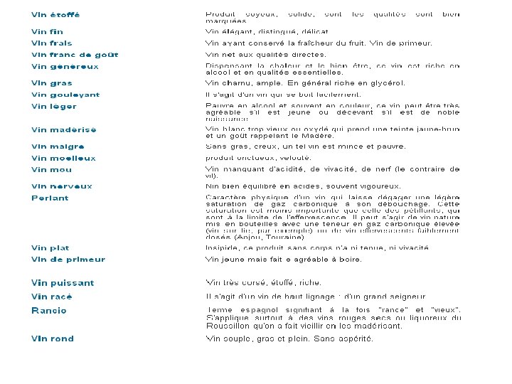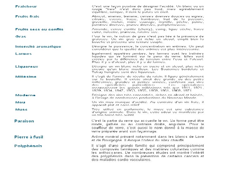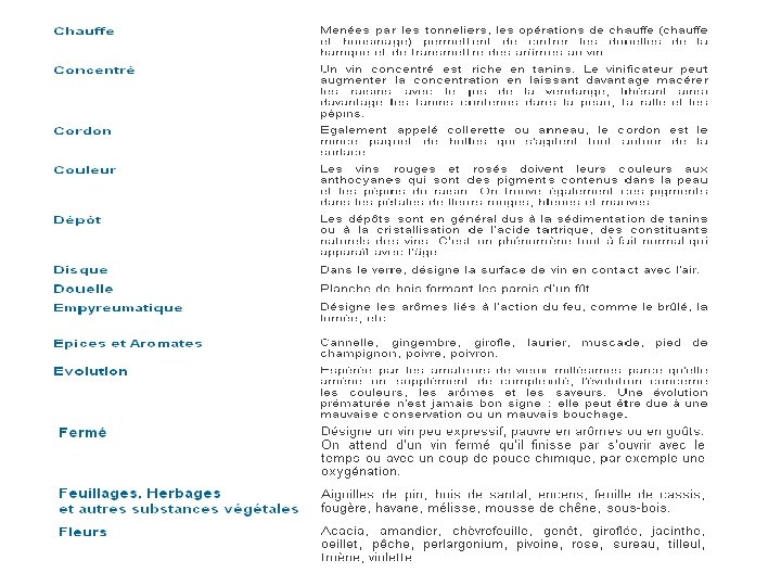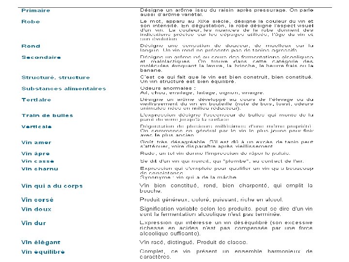 VOCABULAIRE DE DEGUSTATION