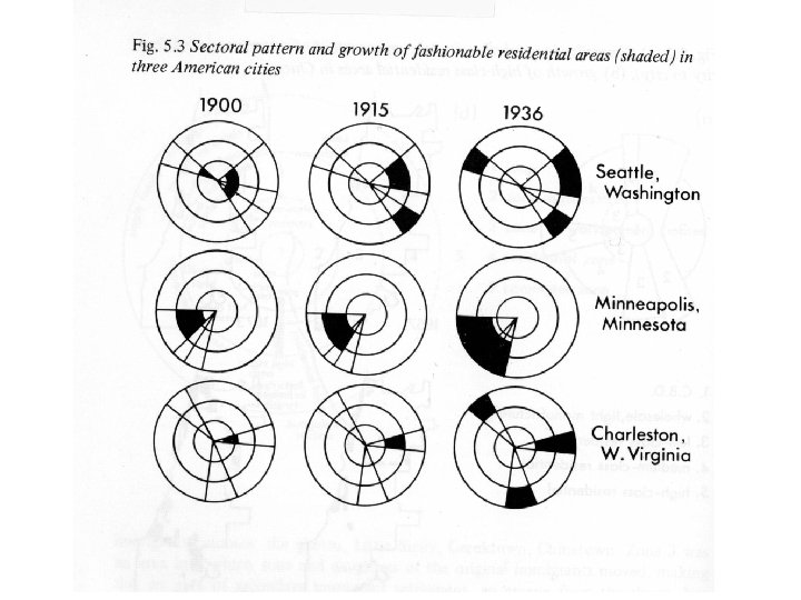 Homer Hoyt • Student of Park and Burgess • One Hundred Years of Land Values in Chicago • Makes two major changes to the thinking of the Burgess model – High income wedge pulls the city – Low income can invade high income – Change surface to network The STREET CAR MODEL