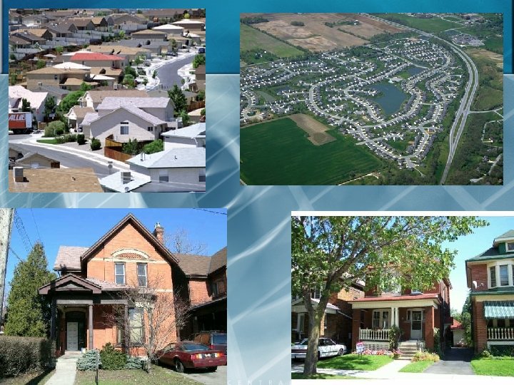 1. 0 Residential Land Uses • includes all the places where people live • often takes up to 40% or more of the developed land in cities • most important characteristic of land use is density in terms of residential density ( = # of housing units per hectare) What is a hectare? ? ? 2 Factors influence residential density: 1. Cost of Land: where the land values are low (outskirts of cities) single family homes are built; where land is more costly (downtown, along major transportation lines/intersections) apartments are built. 2. Age of Neighbourhood: Areas built prior before WWII, have higher densities than houses after WWII, Why? ? ? What does a neighbourhood like this look like? ?