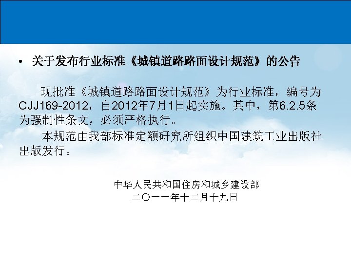 Design Code • 城镇道路路面设计规范》(CJJ 169 -2012)(Code for pavement design of urban road)