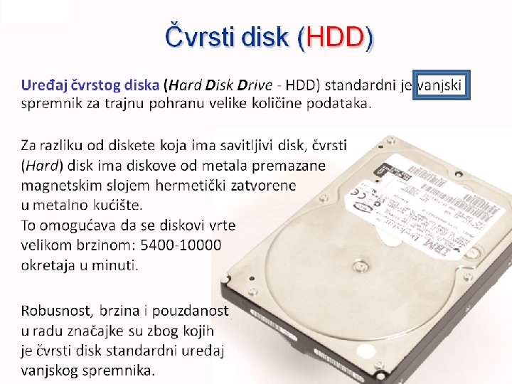 Čvrsti (tvrdi) disk Magnetski disk Magnetske glave Kućište