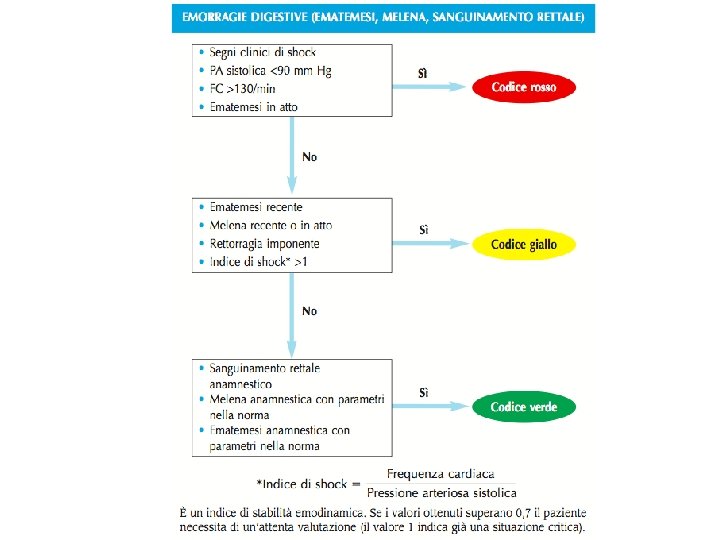 Il dolore addominale, emorragie Paziente instabile monitoraggio intensivo liquidi O 2 trasfusioni endoscopia Paziente stabile che continua a sanguinare liquidi endoscopia Paziente stabile con blocco del sanguinamento supporto medico