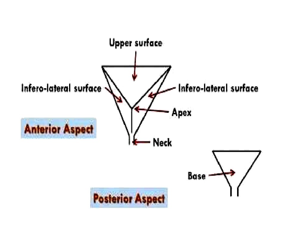 TRIGONE OF URINARY BLADDER ▸ It is smooth triangular part of urinary bladder. ▸ Mucosal lining of trigone is smooth and firmly attached to the underlying wall of the bladder. ▸ Formed by Right and left ureteral orifices. ▸ Once the trigone of urinary bladder is stretched to a certain degree, siganl is sent to the brain that bladder needs to be emptied.