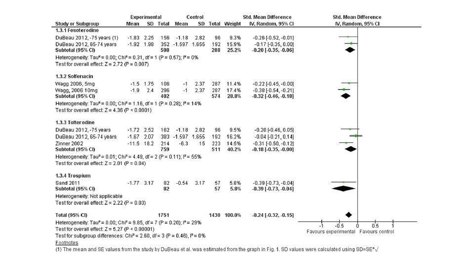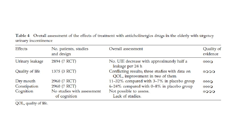 • 13 trials of high/moderate quality • 11‐ Antimuscarinic • 2‐ Duloxetine
