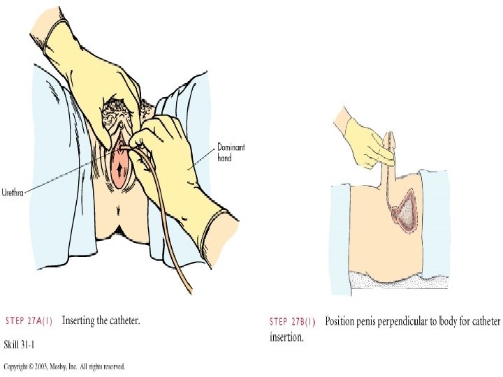 CONTINUE…… � Simple trigger techniques, such as turning on the water faucet while the patient is trying to void. � Other examples of trigger techniques are stroking the abdomen or inner thighs, tapping above the pubic area, and dipping the patient’s hands in warm water. � After surgery, the prescribed analgesic should be administered because pain in the incisional area can make voiding difficult.